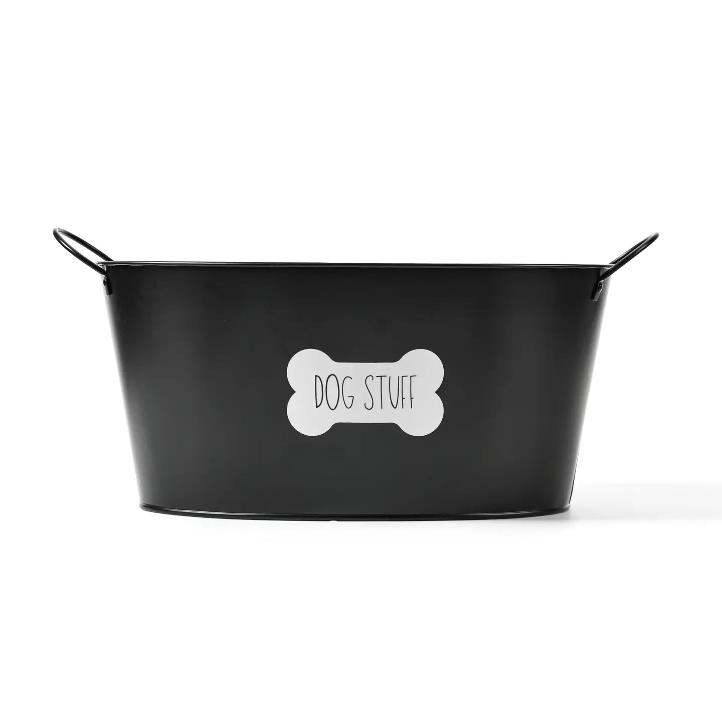 Eine langlebige Aufbewahrungsbox für Haustiere aus Metall mit stilvoller mattschwarzer Oberfläche. Perfekt, um die Sachen von Haustieren übersichtlich aufzubewahren.