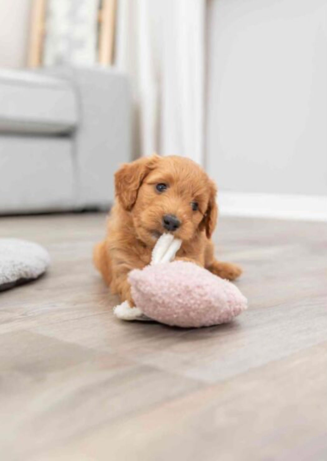Das Schweinchen ist perfekt für Welpen geeignet. Unsere kleinen lieben es. An den Öhrchen können sie mit ihren kleinen spitzen Zähnen zoppeln. Da es super weich ist, wird es zum kuscheln immer mit in´s Körbchen genommen.