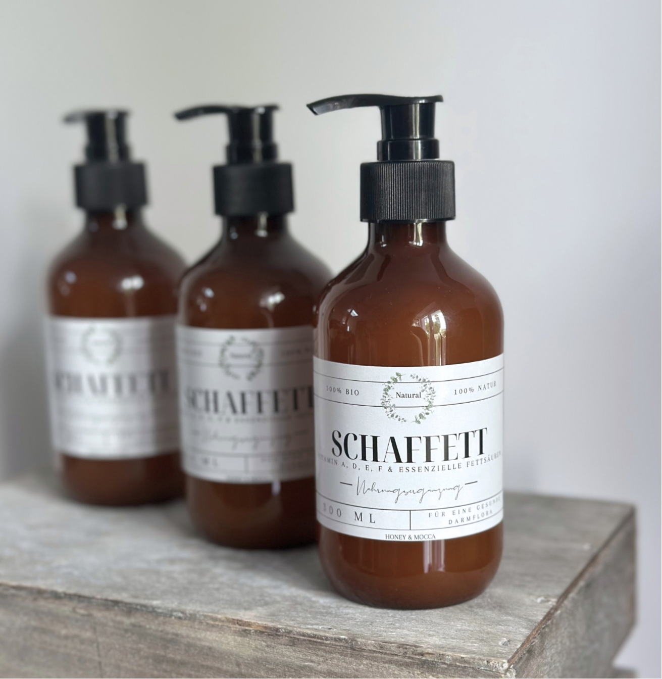 Flüssiges Schaffett setzt sich aus Schaffett, Lachsöl (Omega 3 und 6) und Sonnenblumenöl zusammen. Es unterstützt die Haut, das Fell, die Verdauung und den Darm Ihres Haustieres und hilft bei Futtermittelunverträglichkeiten. Es ist auch für alle Hunderassen und jedes Alter geeignet. Das Lachsöl wird aus frischem Lachs kaltgepresst, enthält Omega-3- und Omega-6-Fettsäuren und hat optimale EPA/DHA-Werte. Sonnenblumenöl enthält einen hohen Anteil an mehrfach ungesättigten Fettsäuren, Omega-6-Fettsäuren und Vitamin E. Vitamin E ist ein wichtiges Antioxidans, das die Zellen, die Zellwand, den Blutkreislauf und das Gewebe schützt und auch den Stoffwechsel in der Zelle reguliert. Das Produkt ist mit Emulgatoren angereichert, um die Verdauung zu verbessern, und wird auf natürlicher Basis stabilisiert.